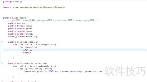 3、 创建一个名为score的实体类,包含以下属性:id(学号)、name(姓名)、java(Java课程成绩)、html(HTML课程成绩)以及mysql(MySQL课程成绩)。