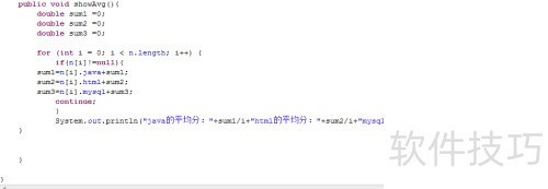 6、 定义一个名为showAvg的公共方法,用于计算并显示平均分数。