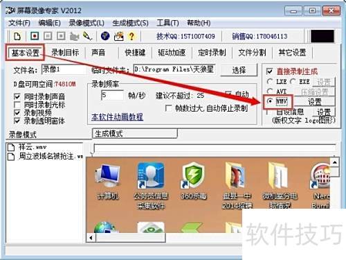 3、 启动屏幕录像专家V2012软件,在基本设置中将保存格式选为WMV。