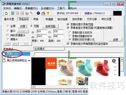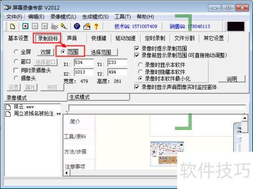 4、 切换至录制目标选项卡,选取范围进行设置。