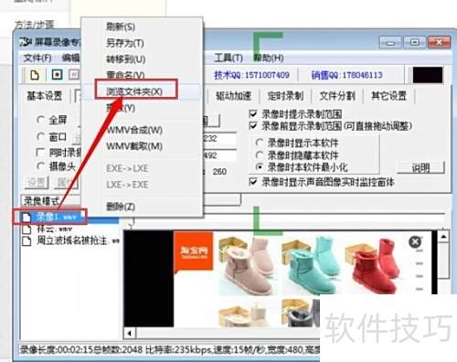 11、 右键点击,选择浏览文件夹,即可打开保存录制视频的目录。