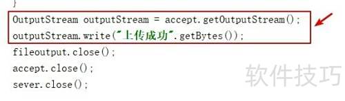 5、 服务器在成功接收并保存文件后,需向客户端返回确认信息。此时,服务器端通过Socket的getOutputStream()方法发送上传成功消息;客户端则调用getInputStream()方法接收该响应,解析服务器返回的内容,从而完成一次完整的双向通信过程。整个流程确保了文件传输的可靠性与交互性。