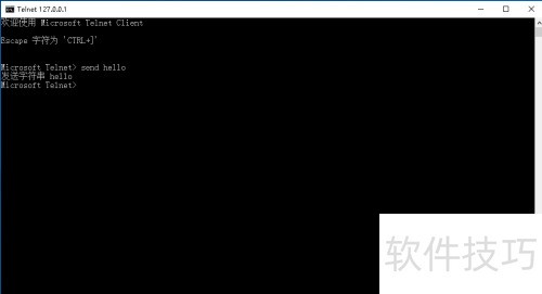 14、 打开命令提示符,输入cmd并确认。在窗口中键入telnet 127.0.0.1 10010,回车执行。接着按下Ctrl + ] 组合键,即可进入指定操作界面。
