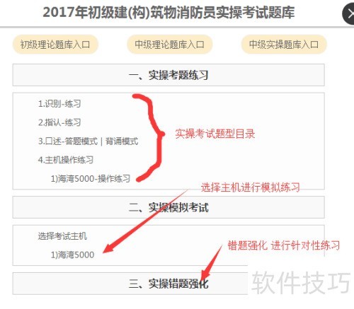 建构筑物消防员考试模拟系统是一款专为消防中控员技能鉴定设计的练习软件,涵盖初、中级理论与实操内容。本文重点介绍实操部分的操作方法,帮助用户熟悉考试流程,提升应试能力,强化实际操作技能训练。