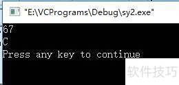 7、 第五行显示字符C的ASCII码值,第六行则直接输出字符C。