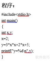 25、 编写C语言程序计算给定公式在x等于2时的y值,并将结果输出到屏幕上。