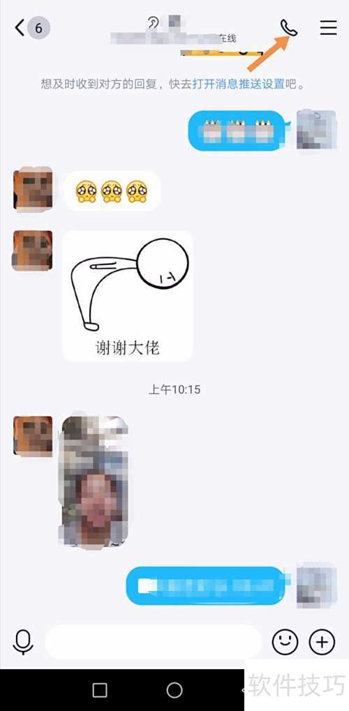 9、 点击右上角的电话标志即可。