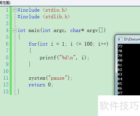 6、 执行程序,将1至100的数字依次输出,效果。