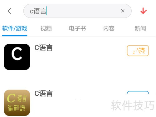 1、 在手机应用商店搜索C语言,选择适合的学习软件,下载并完成安装即可开始学习。