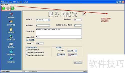 7、 点击Quick Easy FTP Server的启动按钮即可开启服务。