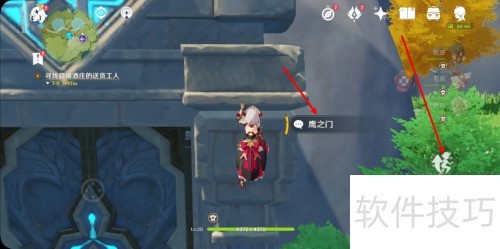 4、 抵达鹰之门后,贴近墙壁按跳跃键攀爬上去。