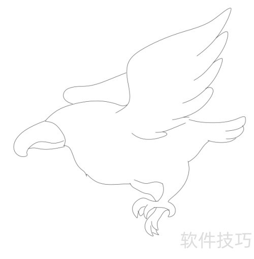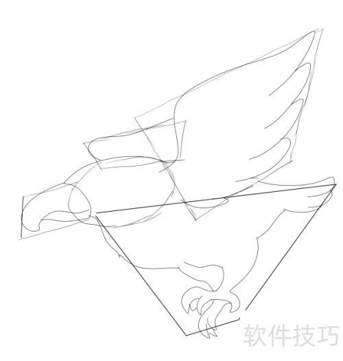 2、 在形态区勾勒出鹰的外轮廓线条。