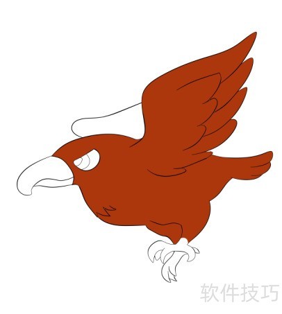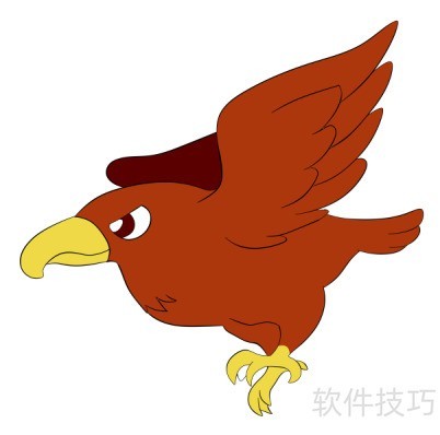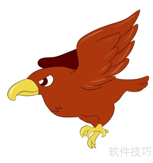 6、 将鹰嘴与鹰爪涂成黄色,眼睛点上黑色,另一侧翅膀涂为深褐色。
