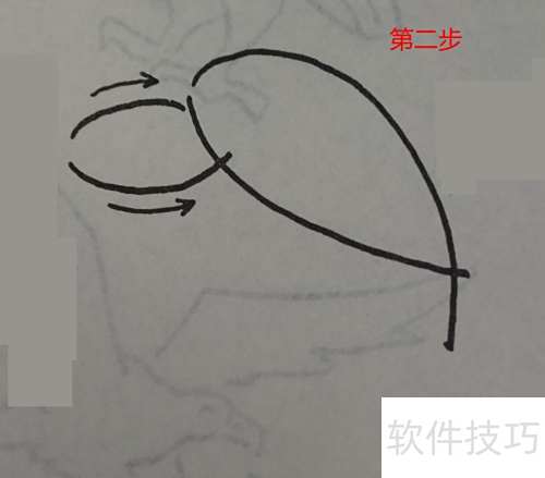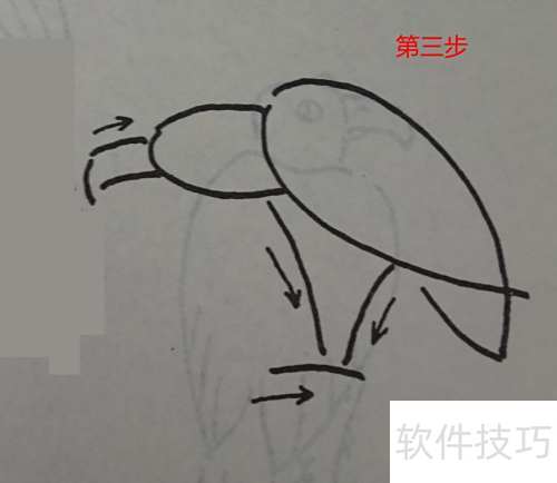 2、 第二步:按照下图描绘鹰的头部轮廓。