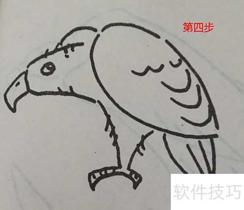鹰的简笔画步骤:先勾轮廓,再添细节。
