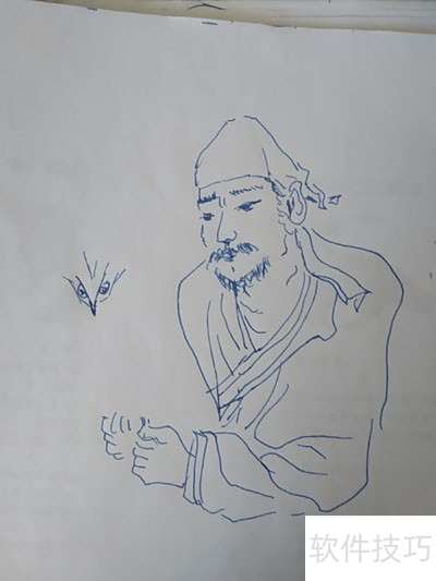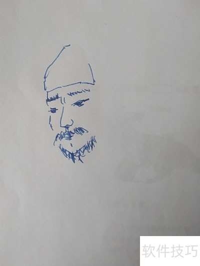 8、 先画头部,浓眉络腮胡,面容粗犷,似胡人形象,特征鲜明,充满异域风情。
