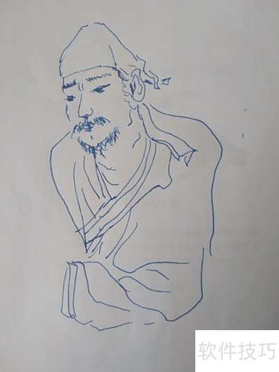 1、 先画头部,浓眉虬须,面容粗犷,显是胡人相貌,特征鲜明,轮廓刚毅,尽显异域风范。
