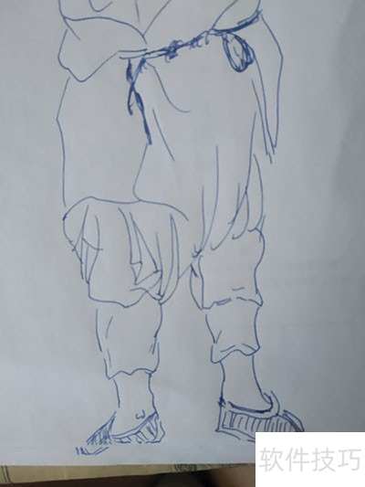 12、 他身穿长裤,裤脚卷至小腿,露出下半截腿部。