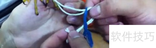 4、 将绳索系于明腿两侧,每脚一条,连接蛤蟆形物,环扣长约五尺。