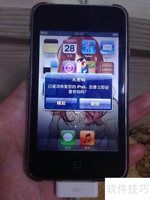 8、 iPod重启后会出现重设密码的提示,按照提示设置新密码即可完成操作。