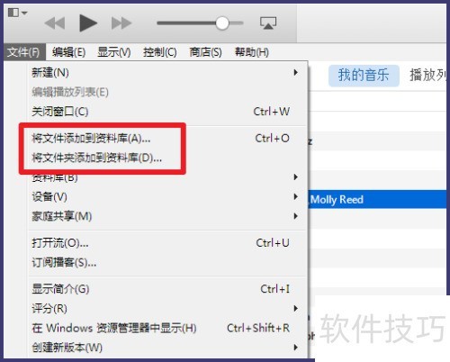 1、 先下载并安装iTunes,打开后点击文件菜单,选择将文件添加到资料库;若音乐集中存放于同一文件夹,可直接选择将文件夹添加到资料库以批量导入。