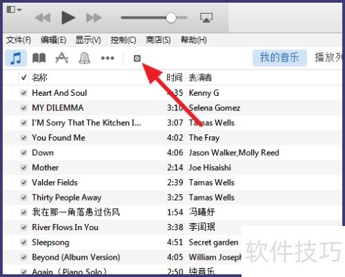 3、 将 iPod shuffle 4 连接至 iTunes 后,iTunes 右上角便会显示该设备的图标,方便用户进行后续操作与管理。