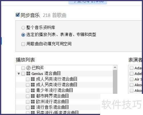 5、 勾选可选择同步全部歌曲或指定播放列表、演唱者等内容。