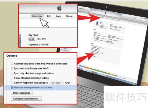 17、 可同步单首歌曲。通常使用iTunes同步播放列表或专辑,其实也可手动管理同步过程,选择特定歌曲。进入摘要选项卡,勾选页面底部的手动管理音乐和视频选项即可实现。