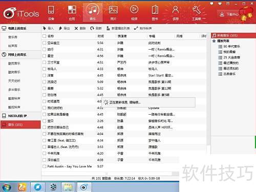 6、 点击iTools菜单中的音乐选项,进入音乐页面。