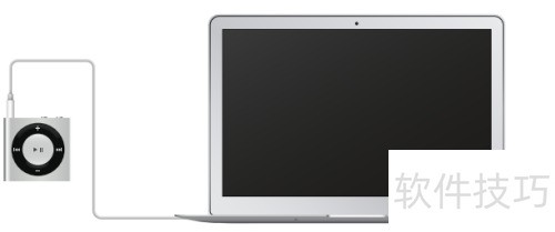 1、 使用包装附带的USB转3.5毫米耳机接口连接iPod Shuffle。