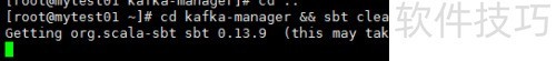 4、 进入Kafka Manager目录后,运行命令 ./sbt clean dist,系统将自动下载所需jar包,此过程耗时较长,请耐心等待。