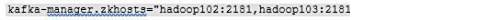 4、 进入 /opt/module/kafka-manager-1.3.3.22/conf 目录,找到 application.conf 配置文件,修改其中的 kafka-manager.zkhosts 参数,确保其指向正确的 ZooKeeper 地址,以实现 Kafka Manager 与 ZooKeeper 的正常通信和集群管理功能。