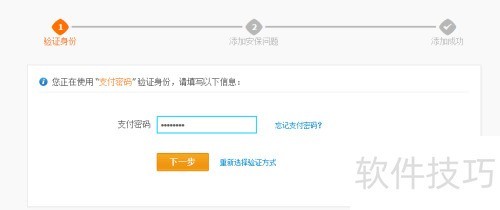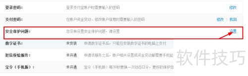 6、 通过支付宝密码设置安全保护问题,立即添加更安心。