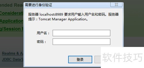 8、 点击Tomcat管理器后,弹出登录窗口,输入正确的用户名和密码,通过身份验证后即可访问管理界面。