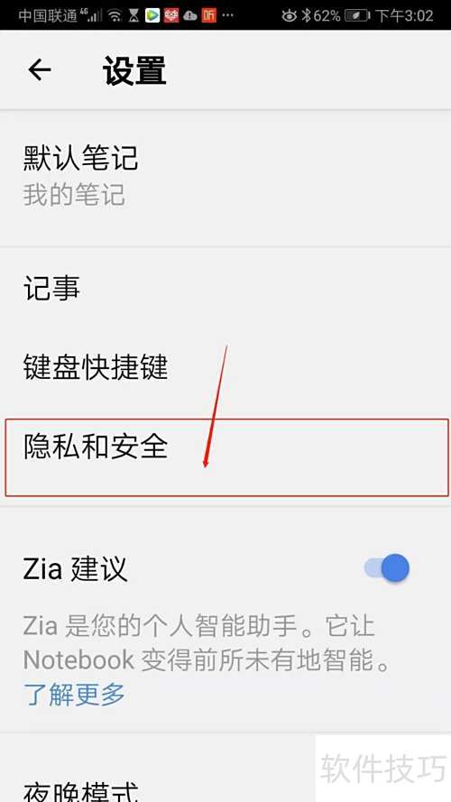 4、 进入设置,选择隐私与安全选项,详见图示。