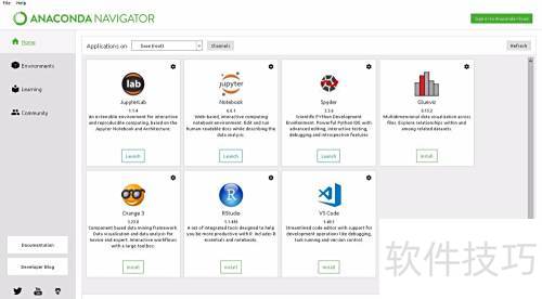 1、 Anaconda已安装完成,启动Anaconda Navigator后显示如下界面。