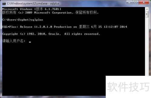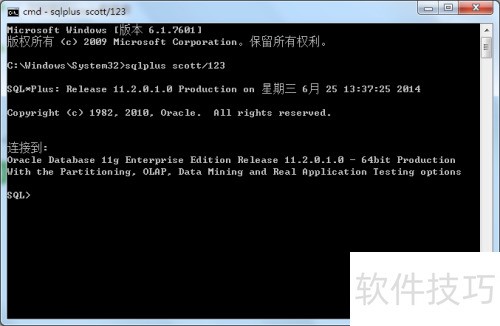 1、 通过DOS命令行启动SQL*Plus的命令格式为:sqlplus,可在命令提示符下输入该命令并连接数据库。