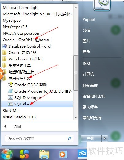 4、 通过开始菜单启动SQL*Plus,操作步骤所示。
