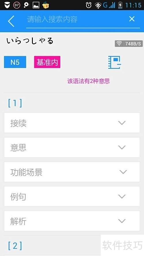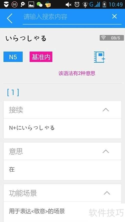 2、 点击首个语法项,包含接续、含义、使用场景、例句及解析,内容详尽,有助于深入理解和掌握。