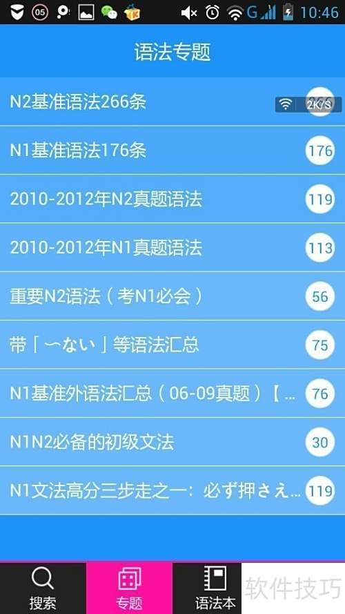 1、 可根据自身日语水平选择N5至N1级别,用于检测语法基础或巩固学习,例如从N5开始。