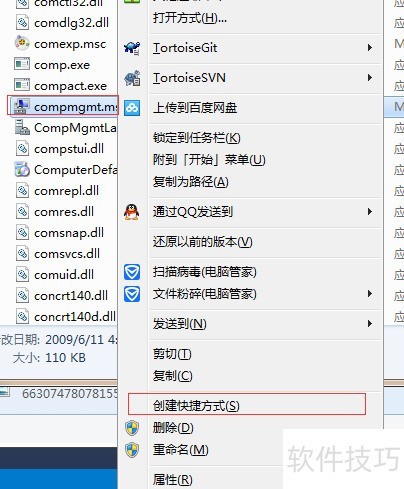 5、 右键点击compmgmt.msc文件,选择创建快捷方式选项。