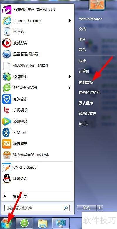 1、 点击开始菜单右边的控制面板图标,操作所示。