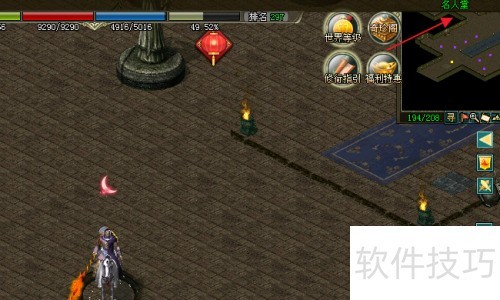 3、 此时已抵达名人堂,抬头看右上方的小地图,当前位置清晰显示在名人堂区域内。