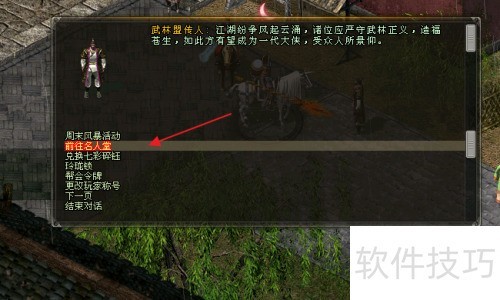 2、 与武林盟传人交谈,点击进入名人堂。