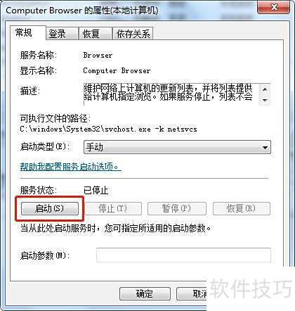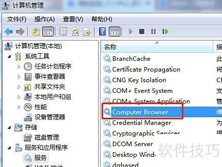 在Win7系统中,通过服务管理器找到Computer Browser并启动即可。