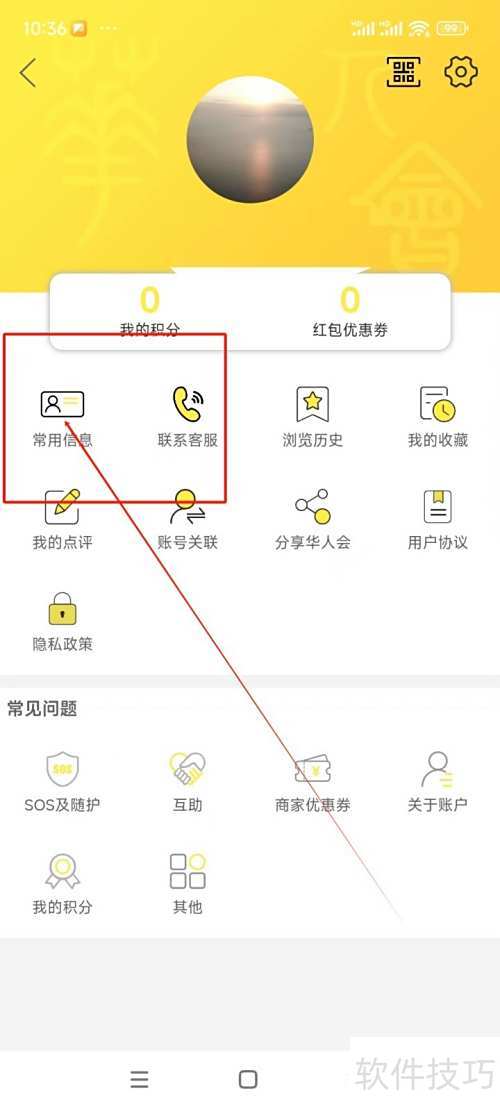 2、 进入界面后选择常用信息选项