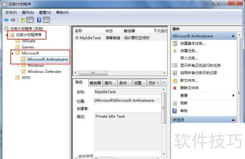 2、 在任务计划程序库的 Microsoft 文件夹下,进入 Microsoft Antimalware 目录并新建一项任务。