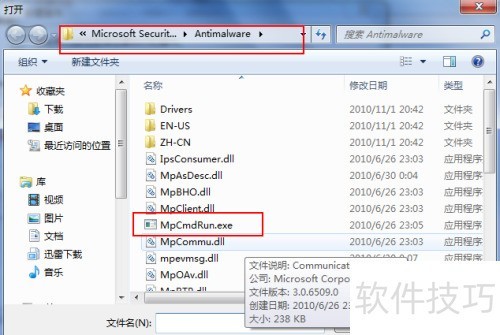 5、 操作选项卡中的第一张图,对应第二张图中浏览所选中的文件,即MpCmdRun.exe。