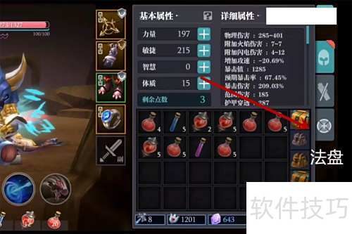 1、 进入魔渊之刃手游,打开背包选择法盘。