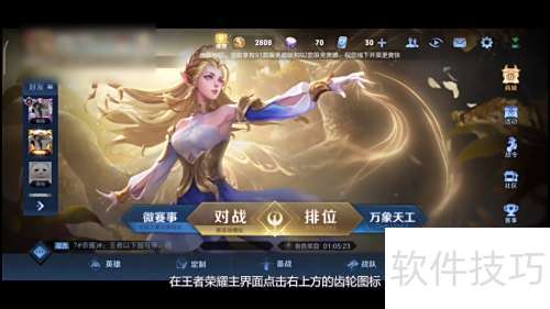 1、 进入王者荣耀主界面,点击右上角的设置图标。